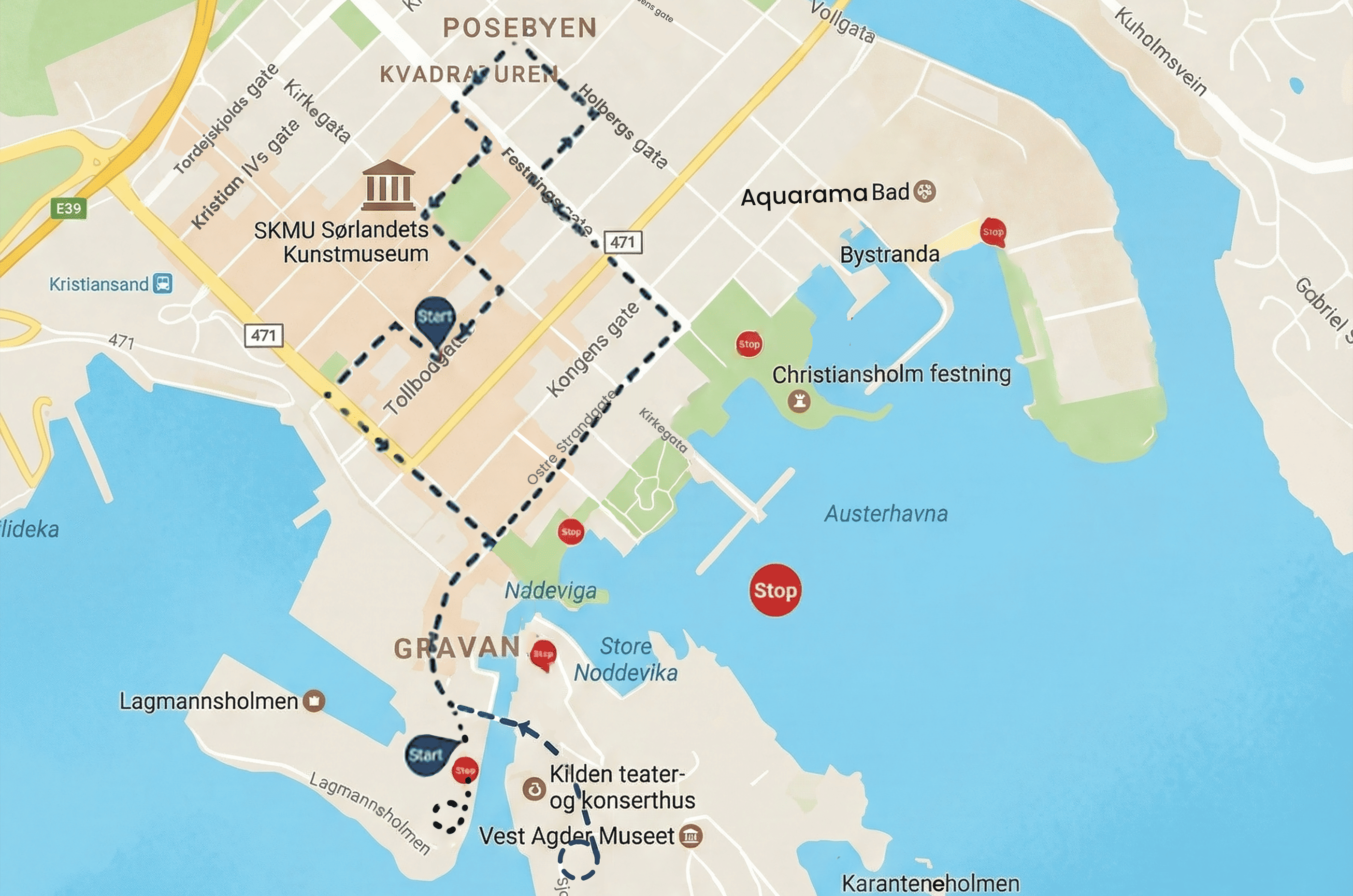 Vi kjører fra cruisekaia med rundtur i byen og ender opp i Markens gate (hop on hop of). Avgangstider tilpasses cruisebåtenes ankomst- og avgangstider.